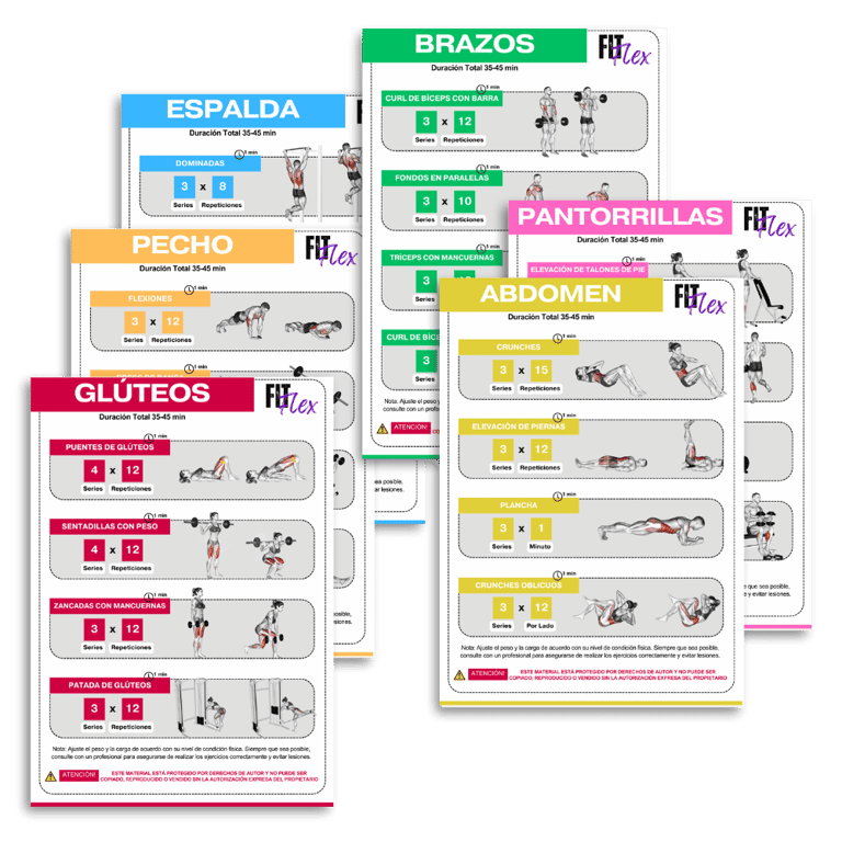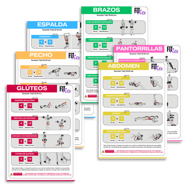 Fichas visuales que ofrecen directrices claras para cada ejercicio, garantizando que comprendas cómo realizarlos de manera efectiva y segura.